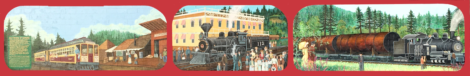 Our second mural was originally painted in 1995 using latex house paint. It became severely faded and was repainted with NovaColor mural paint, bringing it back to life with long lasting, deep colors. The history of Estacada can't be told without remembering the trains that brought the workers and equipment to build the Three Lynx Power Station in 1905. The trolley brought people out to Cazadero Station to spend the day in the country. In honor of Jerry Garcia who passed away in 1995, the train conductor is painted in his likeness.